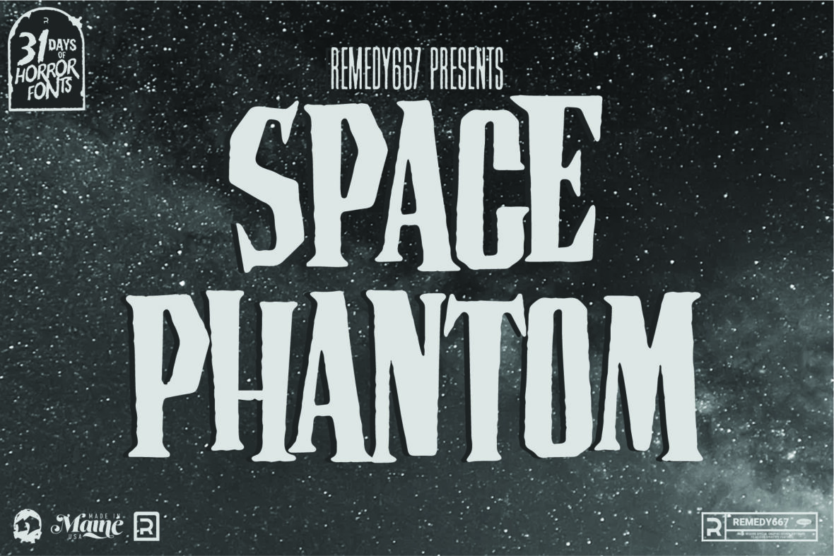 From the cold depths of great beyond comes Space Phantom! A new retro typeface from Remedy667. Inspired by the sci-fi lettering of the 1953 classic Phantom from Space come eerie uneven baselines and spectral space-age serifs. Space Phantom orbits between the uncanny and the unearthly.