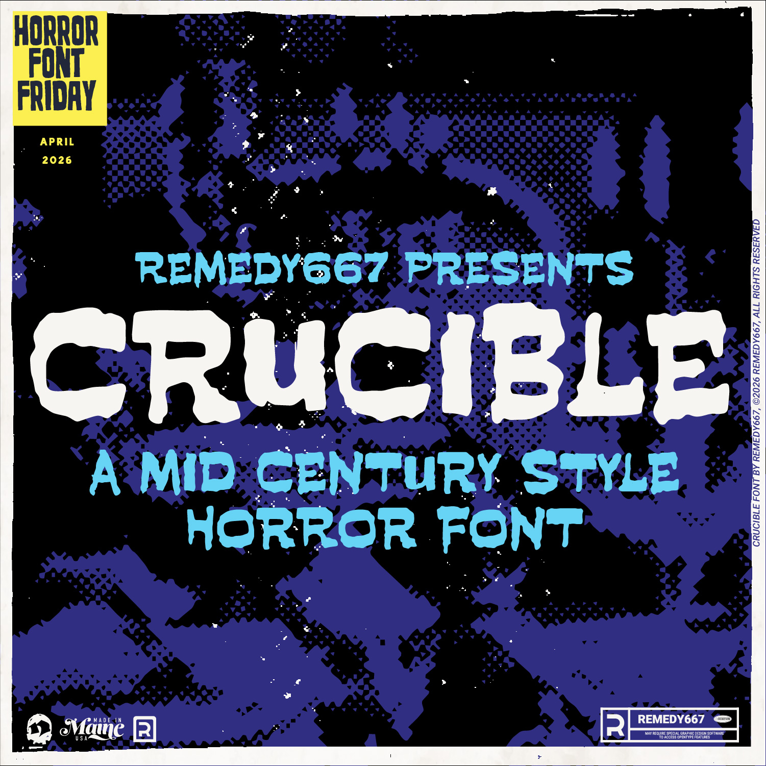 Some fonts may require special graphic design software to access OpenType features. Examples of these programs are Adobe Illustrator, Adobe Photoshop, Adobe Indesign, and Corel Draw. Feedback is always welcome. If there is anything missing from our typefaces that you would like to see, or if there are any issues that occur when using them. Please don’t hesitate to contact us or email me at nick@remedy667.com and let us know.